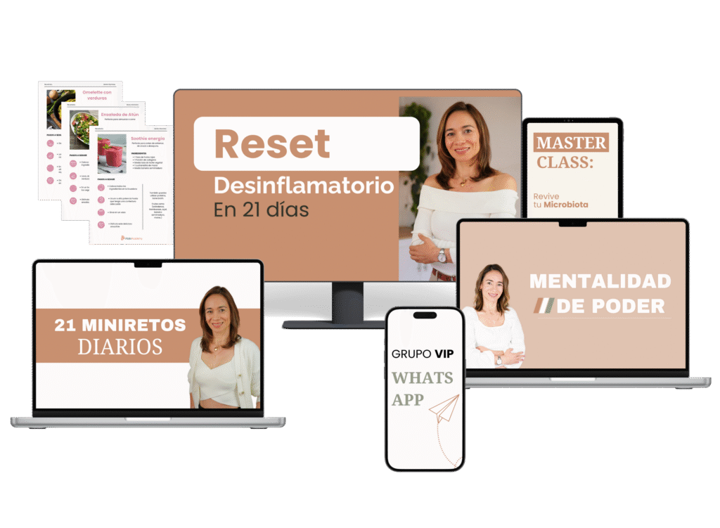 Descubre cómo desinflamar tu abdomen en solo 21 días, comiendo sano, rico y sin dietas extremas… para volver a sentirte ligera, sana y llena de vida.