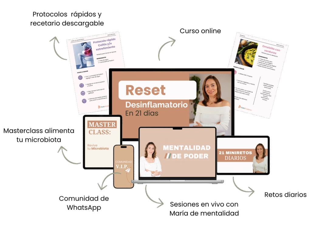RETO desinflamatorio 21 días - Plan completo con videos, descargables, recetario y menú.